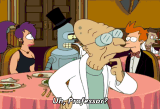 Uh, Professor? Our last presentation comes from our oldest member-- Professor Hubert Farnsworth. Professor? just a second.