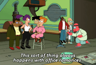 This sort of thing always happens with office romances. Don't worry, Fry.