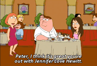 Peter, I think it's great you're out with Jennifer Love Hewitt. Hi. I loved you in Heartbreakers. You be on your best behavior. Here you go, sweetheart. Open up.