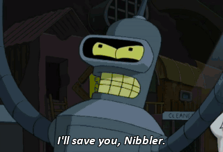 I'll save you, Nibbler. Aw. Bender's going to be killed! You know what else I could use? A weekend at one of those fancy spas. And a Toblerone.