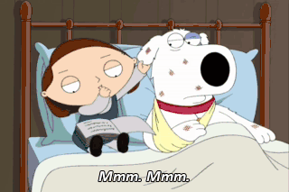 Mmm. Mmm. (DOOR BURSTS OPEN) Stewie? I just finished the book, you dirty birdie.