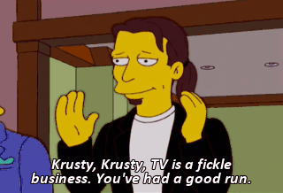 Krusty, Krusty, TV is a fickle business. You've had a good run. But Homer Simpson's a fresh face and...