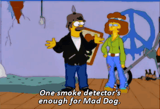 One smoke detector's enough for Mad Dog. Now, let's hit the sack. Whoa! Check it out! Mad Dog's on fire! Stop, drop and roll, man! That's for Clydes, baby.