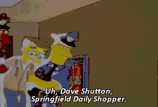 Uh, Dave Shutton, Springfield Daily Shopper. Who are you? Where you going? Oh, do your research, Shutton. Uh, Kent Brockman, Channel Six News.