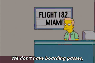 We don't have boarding passes, but we need to get on that plane for reasons that are utterly insane! Go ahead. What do I care? I'm getting laid off tomorrow.
