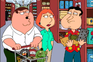 Peter. Cleveland. Joe. Bonnie. Lois. Cleveland. Lois. Bonnie. Quagmire. Peter. ahem. Loretta. Come on, Peter. That ought to slow them down.
