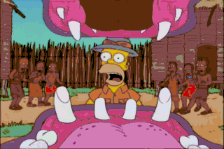 A hungry, hungry hippo. Aaah! Help! Kitenge! Now, Simpsons! Run for it.