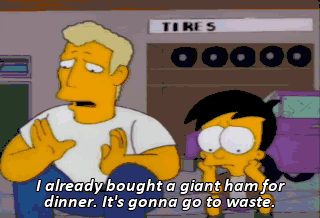 I already bought a giant ham for dinner. It's gonna go to waste. Don't talk about food. I'm so hungry. Well, good-bye. Well, good-bye.