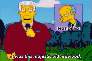 It was this majestic old redwood, which was brutally cut down last night-- not by loggers, but by lightning-- Lightning? Oh! At least it wasn't my fault.
