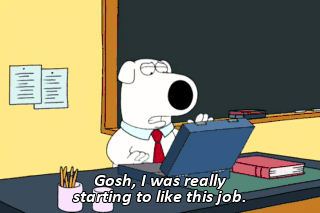 Gosh, I was really starting to like this job. It was nice interacting with intelligent people. I usually hang out with an idiot.