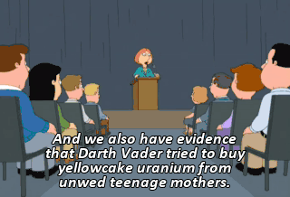 And we also have evidence that Darth Vader tried to buy yellowcake uranium from unwed teenage mothers. Those things all sound scary!