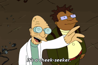 It's a cheek-seeker. And... gotcha! No-o-o! Aaah!
