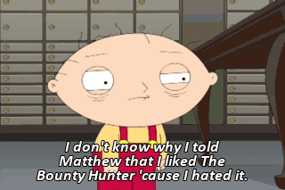 I don't know why I told Matthew that I liked The Bounty Hunter 'cause I hated it.