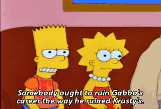 Somebody ought to ruin Gabbo's career the way he ruined Krusty's.