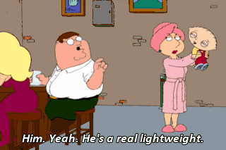 Him. Yeah. He's a real lightweight. Meg, take Stewie upstairs. Show me the way to go home Everybody! I'm tired and I want to go to bed Just the women! Peter, in the 17 years that we've been married