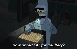 How about "A" for adultery? What? Straight-A transcript? (DOOR OPENS) TRAVERS: Hey, what's that rifling sound? Uh-oh. (GULPS)