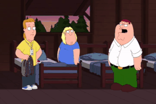 (LAUGHING) Peter Griffin. Cabin clown. Where's your bag, fatty?