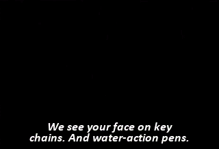 We see your face on key chains. And water-action pens.