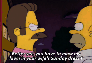 Better yet, you have to mow my lawn in your wife's Sunday dress !