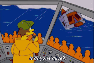 Is anyone alive? More alive than any of you squares! (GIGGLING DAZEDLY) (GIGGLING) HOMER: You're on my hair! Oh, that's better.