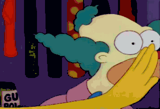 Hey! Not the face! Why you maddening, impossible man! If you don't go tonight I won't be here tomorrow. Oh, all right, I'll go. Oh, Krusty! But I hate missing schnapps night at the Friars Club.