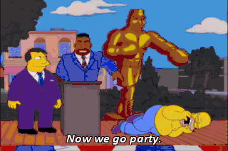 Now we go party. Homer, you've suffered a broken jaw. Broken jaw? Ohh! He won't be able to talk for quite some time.