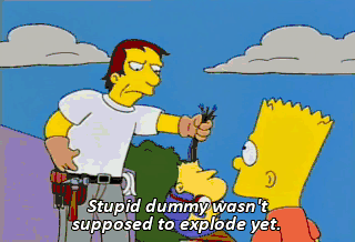 Stupid dummy wasn't supposed to explode yet. There's the real Milhouse. Milhouse! Hey, you're not Milhouse. No, I'm just Milhouse when he gets hurt. Ohh!
