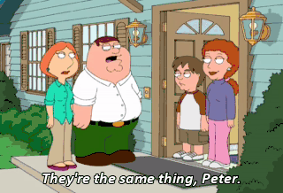 They're the same thing, Peter. You know what, Lois? They're not the same thing and the sooner you get that through your thick skull, the sooner we can get this marriage back on track.