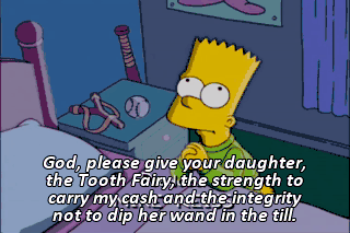 God, please give your daughter, the Tooth Fairy, the strength to carry my cash and the integrity not to dip her wand in the till.