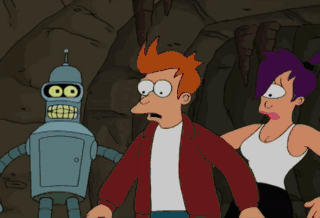 I'll save us! Yah! Oh, that feels good. Yep. Whew! Thanks, Bender. The exit. We made it!