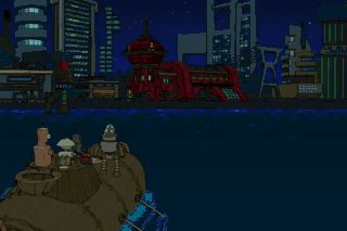 Aim for their power lines! They're the devil's veins! And electricity is his blood! Bender, if we don't survive the attack, I want you to know I love you. Okay, fine. Fire!