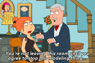You're not leaving this room until you agree to stop this modeling thing... once and for all.