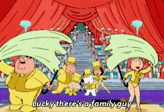 Lucky there's a family guy Lucky there's a man who'll positively tell you all the things that make us