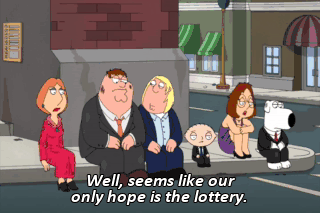 Well, seems like our only hope is the lottery. Holy shit, we won twice and we're right back here again. We had $150 million, and we blew through it in a month.