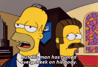 but this man has turned every cheek on his body. If everyone here were like Ned Flanders, there'd be no need for heaven. We'd already be there.