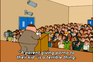 "A parent giving porno to their kid "is a terrible thing. "but I'm here to tell you that I'm innocent!" Oh, yeah. Right. "I didn't give those magazines to my son. "My wife... "My--my--My wife... Lois..."
