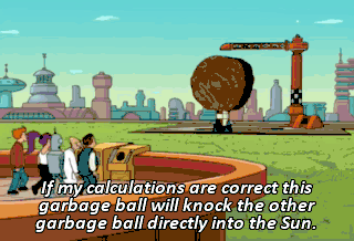 If my calculations are correct this garbage ball will knock the other garbage ball directly into the Sun. And if my calculations are correct we're all going to die horribly.