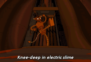 Knee-deep in electric slime You'll suffer till the end of time Enduring tortures, most of which rhyme Trapped forever here in robot hell. Of course, that's just for starters.