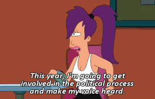 This year, I'm going to get involved in the political process and make my voice heard. What?