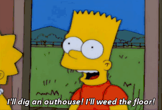 I'll dig an outhouse! I'll weed the floor!