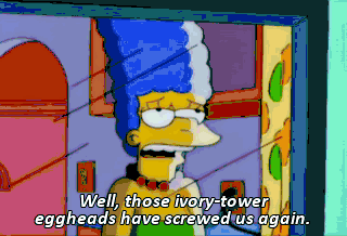 Well, those ivory-tower eggheads have screwed us again. Let's just have some milk and go to bed. Hey. This milk's broken. It's got a computer chip in it. Everything does. Oh! Oh!