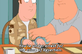 You're under arrest for the crime of desertion. Oh, my. Uh, maybe it's time for us girls to hit the powder room. You may use the yard. So you were lying to us this whole time? You weren't really injured in Iraq?