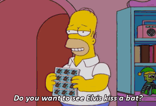 (MIMICKING ELVIS PRESLEY) Hey, baby, come here. I want to kiss you.