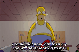 I could quit now, but then my son will never look up to me. Oh, why was I born a dad?