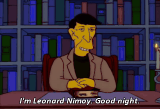I'm Leonard Nimoy. Good night. Uh, Mr. Nimoy, we have 10 minutes left. Oh. Fine. Well, let me just get, uh, something out of my car.