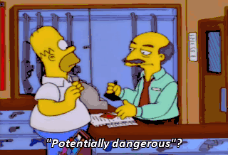 - "Potentially dangerous"? - Relax. That just limits you to three handguns or less. Whoo-hoo! Close your eyes, Marge.