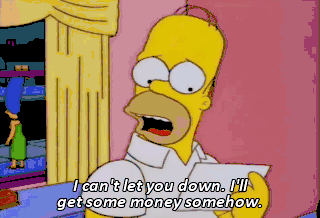 I can't let you down. I'll get some money somehow. Hello, Vegas. Give me a hundred bucks on red. D'oh! All right. I'll send you a check.