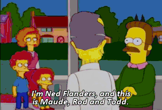 I'm Ned Flanders, and this is Maude, Rod and Todd. Howdilly-doodilly yourself there, Ned. This is my wife, Barbara. Call her Bar. Would you like some lemonade? Tiptop-notch! Okilly-dokilly.