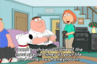 I want to show you one of the most special times of your life and mine, our honeymoon. LOIS ON TV: I think you've had enough, Peter. PETER ON TV: You don't know. Get away!