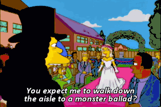 You expect me to walk down the aisle to a monster ballad?